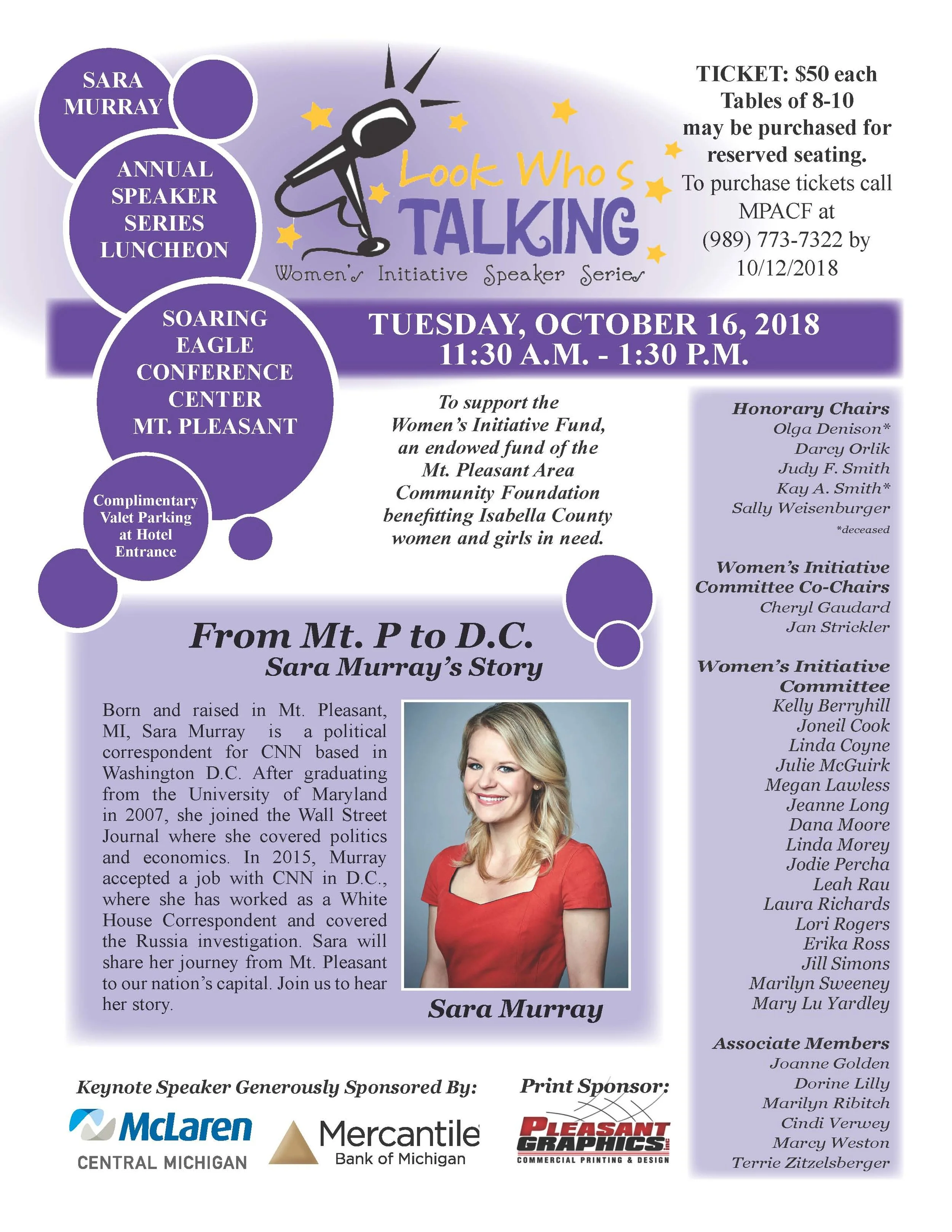 The Women’s Initiative serves as a legacy of women helping women and girls in Isabella County, now and for generations to come. A committee of local women host two fundraising events each year for the Women’s Initiative. The next, Kay’s Day, will be held on May 23, 2018. Tickets for this networking and social event will available in the spring.